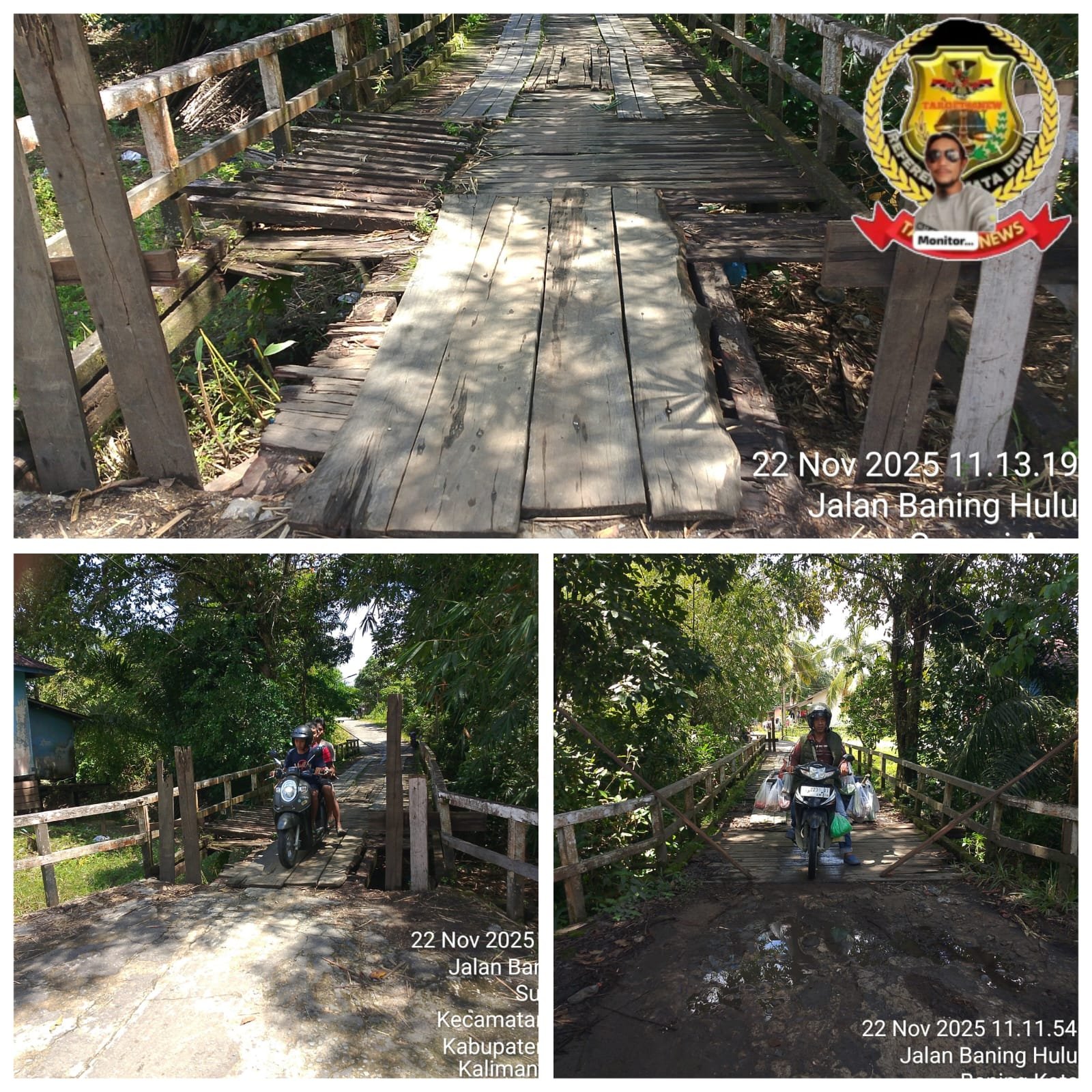 Dan Saya Sebaga Warga setempat NurEfendi Dan juga sebagai Kaperwil Di Media Target86News mengatakan Jembatan yang terletak di jln baning hulu tersebut telah lama rusak parah sekitar -+1 tahun an hingga kini belum tersentuh tangan pemerintah daerah kabupaten sintang untuk di perbaiki bahkan Jembatan tersebut sudah memakan korban kecelakaan, jatuh kebawah jembatan,(Terperosok) adapaun panjang jembatan nya sekitar 20 meter dan lebar 2,5 meter.