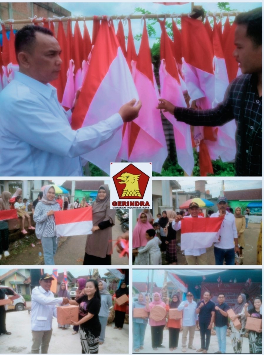 Target 86 news- Bungo DPC Partai Gerindra Bungo ketua Rahmat Fadli,SH Membagikan bendera merah putih produk umkm untuk warga dan…
