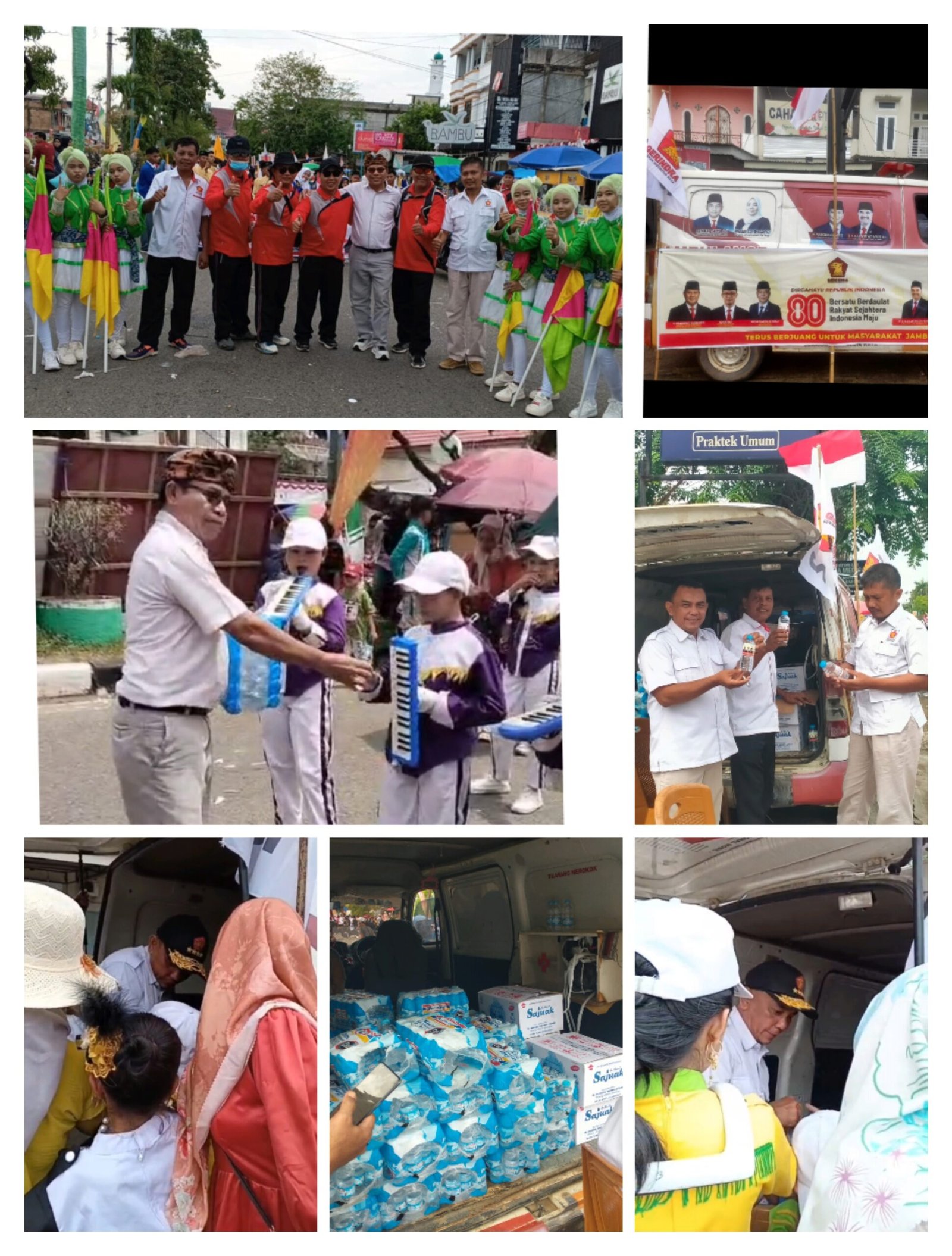 Target86news-Bungo Dpc partai Gerindra Bungo memberikan air mineral dalam kemasan kepada para peserta pawai dalam rangka memperingati Hari Ulang Tahun…